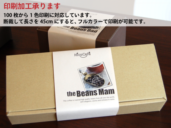 お客様がお持ちのプリンタで、店名やロゴを印刷しオリジナルの巻き帯が作れます。